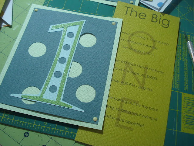Making party invitations. Until last night, when I started to make Jonathan's invitations for his 1st birthday, I had completely forgotten how much I use to LOVE making invitations. I think it might have been the best part of the party for me. I thought I was so tricky with the printer, I'd print one half of the invitation out, turn the paper upside down and then print out the other half. . . a couple of "tricky" paper folds and viola! I had one snazy looking party invitation! Once or twice I might have even had colored ink in the printer.